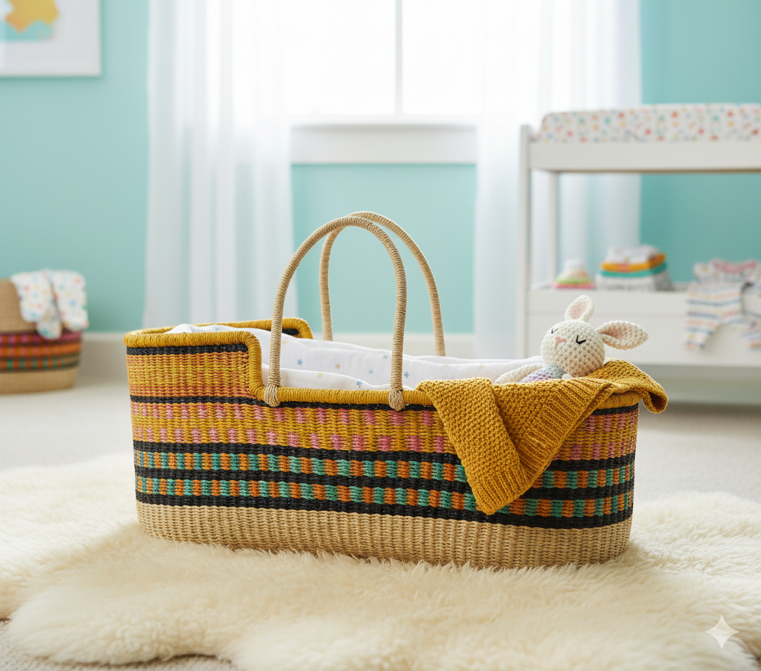 Sweet Lullaby Moses Basket – Handwoven Baby Bassinet for Newborns